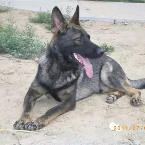 肩部:肩膀向后倾斜放置,肌肉发达,隐藏在身躯里。前臂与肩胛连接处的角度约为90度,前臂从与肩胛骨的结合处向后延伸到肘部这一段,决不能垂直于地面。肩胛骨与前臂骨的长度大致相等。从地面到肘部的距离与从肘部到马肩隆的距离大致相等。前肢:前肢有充足的骨量和肌肉,与平衡的身体结构相称。 不论站立时还是行走时,肘部都贴近身体且笔直向后。从侧面观察,前肢正好位于马肩隆以下位置,直且垂直于地面。从前面观察,从肩经过肘部到脚腕呈一直线。前脚腕结实而灵活。两条前肢各有一个狼爪。前足爪:圆形,紧凑,脚垫厚实,脚趾圆拱。