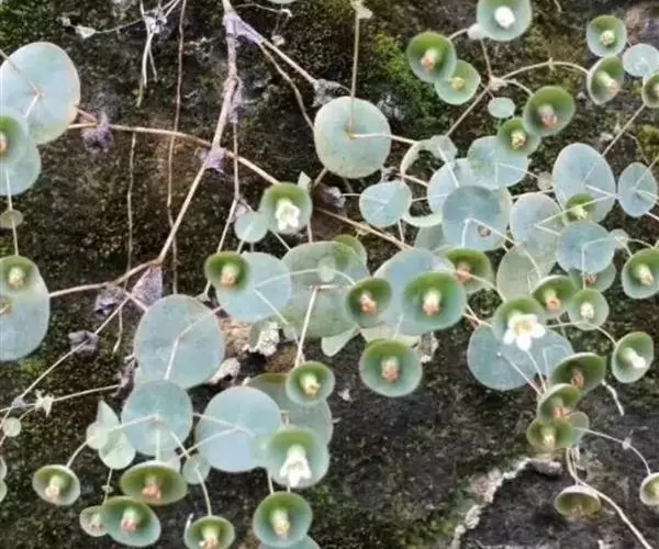 一年生草本,高10-30厘米,全株光滑无毛。茎直立,黄绿色,圆柱形,多分枝,枝柔弱。基生叶对生,具短柄,卵形;中上部茎生叶呈圆形的贯穿叶,直径7-20毫米,上面绿色,下面灰绿色,具突出的网状脉纹。复聚伞花序呈假二叉状分枝,具多花,有叶状苞片;花5数;花萼钟状,长5-6毫米,萼筒膜质,萼齿甚小,不整齐,三角形,长1-1.5毫米;