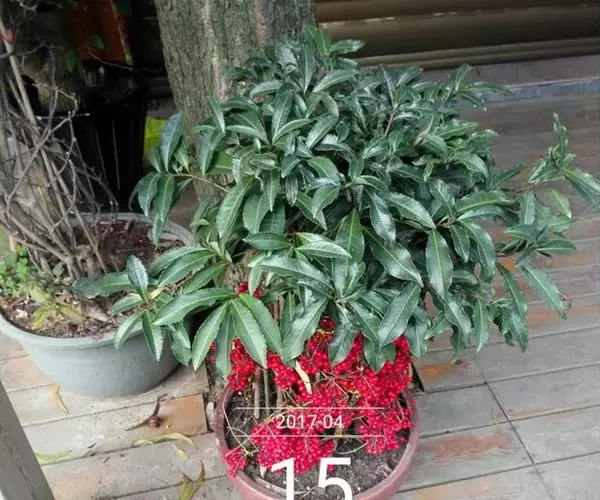 ③ 在摆放盆栽朱砂根前进行土壤消毒, 每667㎡撒施 3%呋喃丹 4~ 5 kg 、 或10% 灭线磷 4~ 5 kg 或 3%米乐尔 4~ 5 kg。