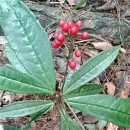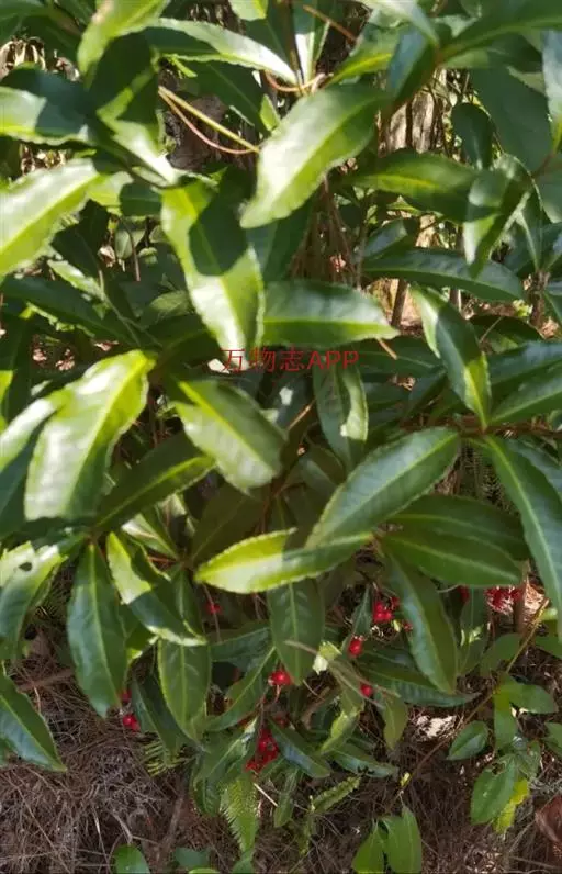 出自《本草图经》:百两金,叶似荔枝,初生背面俱青,结花实后,背紫面青。苗高二、三尺,有干如木,…