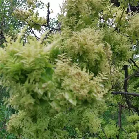 合欢树枯萎病是一种系统性传染病,对合欢树来说是最严重的病害。该病发生几率较大,幼苗及成品树都受到影响。其中,3-5年生树最易患枯萎病且发病速度快。另外,一些生命力弱的植株受此病影响,容易死亡。合欢枯萎病受气候条件、土质和地势、栽培环境及栽植管理的影响。高湿、多雨季节发病严重;土质粘重、地势低洼、排水不良,积水地易发病;移栽或修剪等管理过程中造成的伤口,会增加镰刀菌侵染机会。幼苗染病后,先是叶片变黄,然后根茎基部变软,常出现倒伏,最后全株枯死。成株染病的话,先是1-2根枝条出现症状,病枝上的叶片萎蔫下垂,叶色呈淡绿色或淡黄色,后期干枯脱落,随后部分枝条开始干枯,逐步扩展到整株,至死亡。截开主干断面,可见一整圈变色环,树根部断面呈褐色或黑褐色。