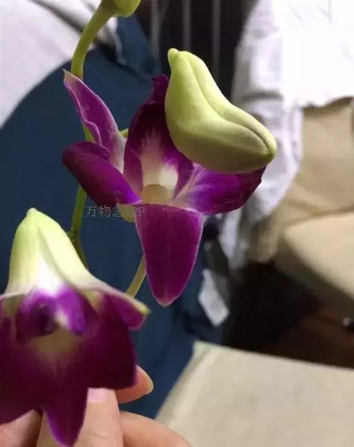 华丽石斛(D.superbum),花淡紫红色,唇瓣紫红色。