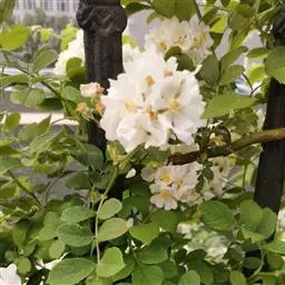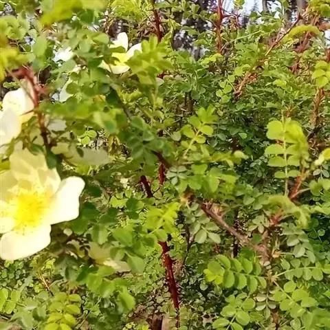 白蔷薇:直立灌木,高约2米;小枝有不等钩状皮刺,有时混有刺毛。小叶通常5,稀7,宽椭圆形或卵形,…