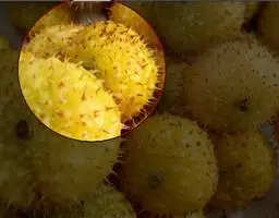 蔷薇属植物的果实都较小,玫瑰果也不例外。果实大小类似于樱桃,平均粒重3.5g左右。玫瑰果果皮和果肉颜色为红色或红黄色,果皮较薄;果肉包裹着果籽,与果籽有绒毛相连,果肉占果实的比重达63%。但由于每颗玫瑰果内都有15粒~40粒稻米大小的果籽,籽肉不易完全分离,所以鲜食不太方便。玫瑰果营养价值较高,适宜进行一定程度加工后食用。