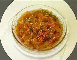 蕨根粉100g,辣椒油一大勺,醋两小勺,生抽一小勺,盐1g,青红尖椒各两个,大蒜四瓣。