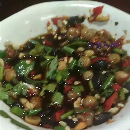 苦菊、蕨根粉、小红辣椒、香葱、花生。