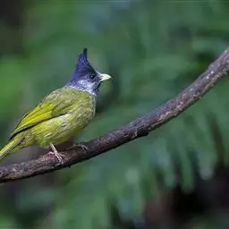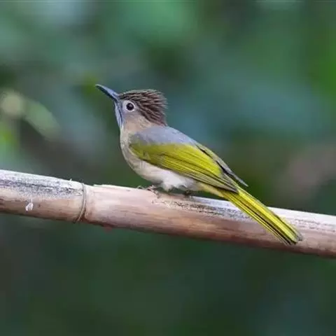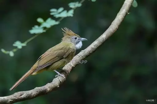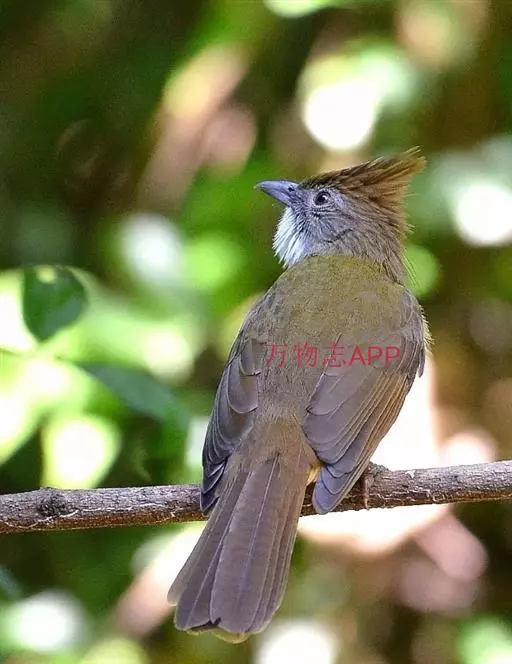 白喉冠鹎(学名:Alophoixus pallidus):体长20-25厘米。头顶红褐色,有长而细的羽冠、红褐色,头侧灰色。上体橄榄绿黄色,飞羽暗褐色,外翈茶黄色,尾下覆羽皮黄色。
