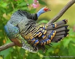 黑长尾雉大型鸡类,体长53~88厘米。雄较雌大。雄鸟通体紫蓝色,脸鲜红色,翅上有一条显著的白色翅斑…