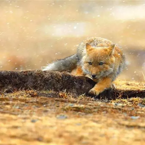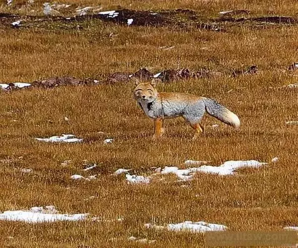 藏狐(学名:Vulpes ferrilata)大小接近赤狐或略小,但耳短小,耳长不及后足长之半,耳背之毛色与头部及体背部近似。尾形粗短,长度不及体长之半。冬毛毛被厚而茸密,毛短而略卷曲。背中央毛色棕黄,体侧毛色银灰。尾末端近乎白色。头骨之吻部十分狭长,吻部中央部位之侧缘稍向内凹入,第二前臼齿处之吻宽约为腭长之1/4。犬齿甚长,上犬齿之高约等于第四前臼齿加第一臼齿长度之总和。