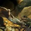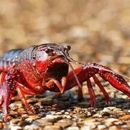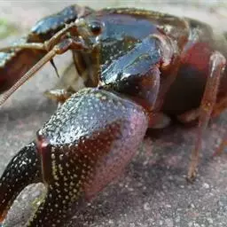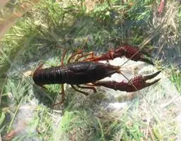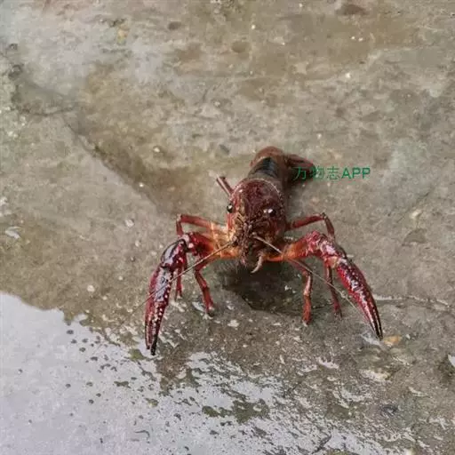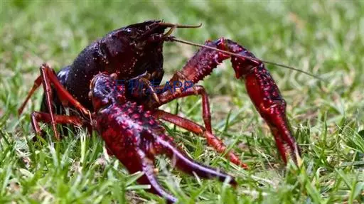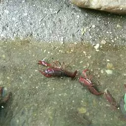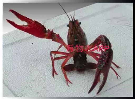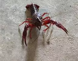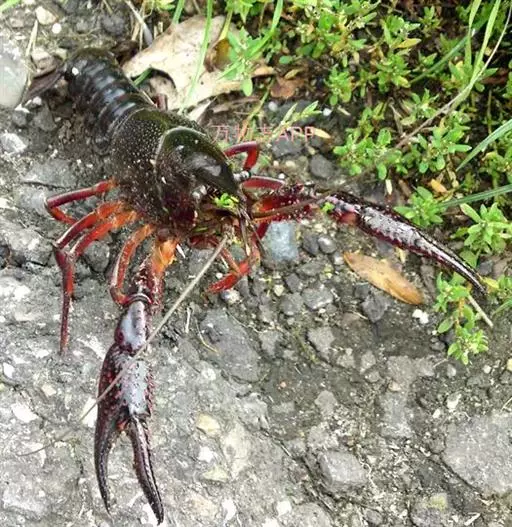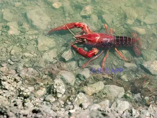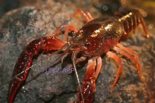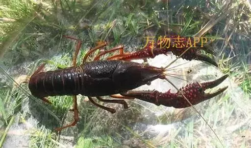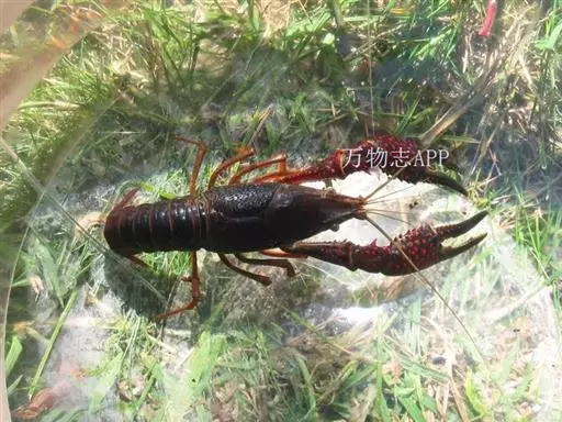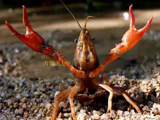 小龙虾(学名:Procambarus clarkii):也称克氏原螯虾、红螯虾和淡水小龙虾。形似虾而甲壳坚硬。成体长约5.6~11.9厘米,暗红色,甲壳部分近黑色,腹部背面有一楔形条纹。幼虾体为均匀的灰色,有时具黑色波纹。螯狭长。甲壳中部不被网眼状空隙分隔,甲壳上明显具颗粒。额剑具侧棘或额剑端部具刻痕。