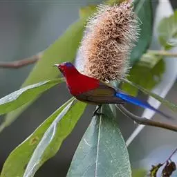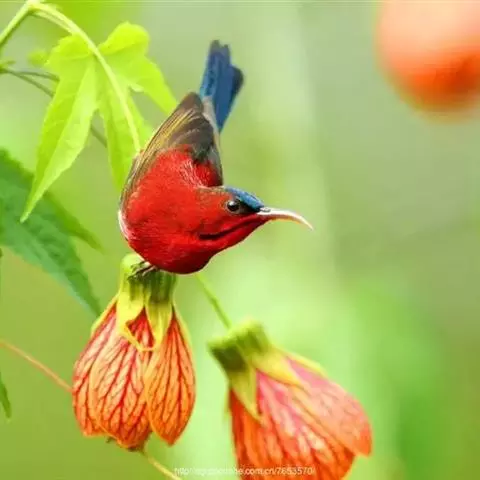 火尾太阳鸟为太阳鸟科太阳鸟属的鸟类。体长20厘米,色彩艳丽。雄鸟红色,具形长的艳猩红色中央尾羽。…