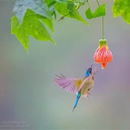 叉尾太阳鸟,雀形目太阳鸟科太阳鸟属留鸟;为小型鸟类,雄鸟头顶辉蓝绿色,上体橄榄绿色,腰明黄色,…