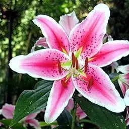 鳞茎人药中药称“百合”,性味甘、平,有润肺止咳,清心安神之功效。主治结核久咳,痰中带血,或热性病余热未退,虑烦惊悸,心神恍惚,神经衰弱,失眠等。