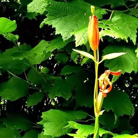 青岛百合(学名:Lilium tsingtauense)又名崂山百合,为多年生单子叶草本植物,原产于中国山东省,是中国百合科植物的特有种。青岛百合花色为橙红色或橙黄色,带淡紫色斑点,由5~7朵单花形成总状花序,花朵星状,花被不反卷,具有轮生叶。该物种集中分布于崂山北九水以南海拔400~1000m的区域内,一般生长于阴坡或半阴坡的森林中。被列入国家第二批稀有濒危植物名录。