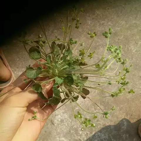 一年生或二年生草本植物。主根不明显,具多数须根。叶全部基生,叶片近圆形或卵圆形,直径5-20毫米,叶柄长1-4厘米,被开展的柔毛。