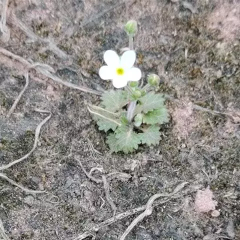 点地梅一年生或二年生无茎草本。全株被节状的细柔毛。主根不明显,具多数须根。叶全部基生,平铺地面;叶柄长1-4cm,被开展的柔毛;叶片近圆形或卵圆形,直径5-2omm,先端钝圆,基部浅心形至近圆形,边缘具三角状钝牙齿,两面均被贴伏的短柔毛。花葶通常数枚自叶丛中抽出,高4-15cm,被白色短柔毛。