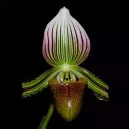 虎斑兜兰 生于海拔1500-2200米的林下荫蔽多石处或山谷旁灌丛边缘。 兜兰没有贮藏养料的组织,需保证喜凉品种的休眠期。冬季大多数兜兰都有要求比较干燥、光线充足的生长环境。栽培兜兰时花形大、着花多的植株比较喜温,较适合把它们放在室内培植。用作插花的兜兰花形宜大且圆,故不可一味追求花朵的数量而忽视其质量。