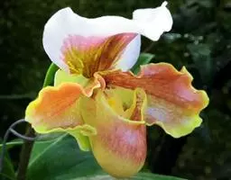 兜兰花比较雅致,色彩比较庄重,色及带有不规则斑点或条纹。花瓣较厚,花朵开放期比较长。属观赏类花草。
