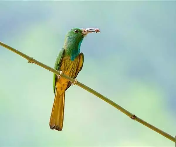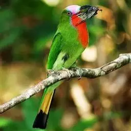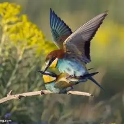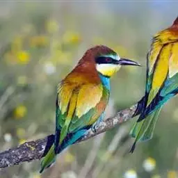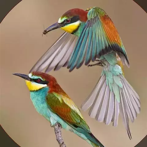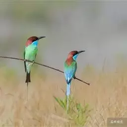 蓝颊蜂虎:是蜂虎科、蜂虎属的鸟类,共有2个亚种。体长27-33厘米,翼展46-49厘米,…