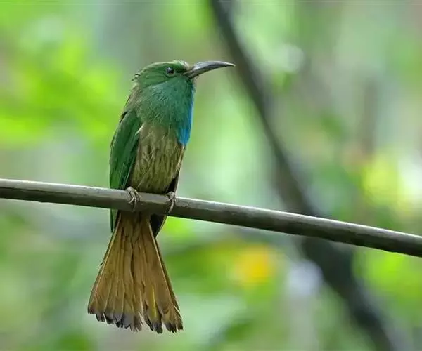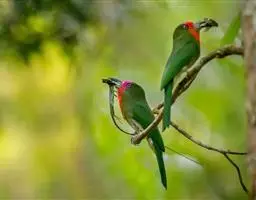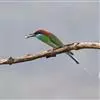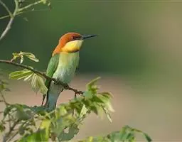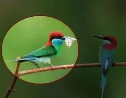 栗喉蜂虎是蜂虎科蜂虎属的鸟类。有热带鸟类羽毛艳丽的特征:喉部是栗红色的,黑色的过眼纹,…