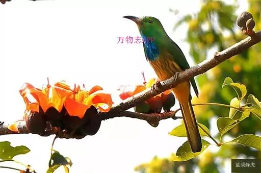 蓝喉蜂是蜂虎科蜂虎属鸟类。体长26-28厘米,嘴长而弯曲,有明显细长的中央尾羽。…