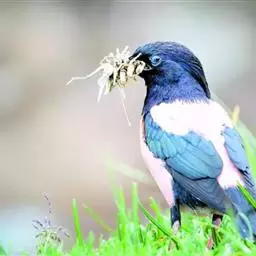 斑椋鸟:是中等体型的黑白色椋鸟,体长24厘米。头顶、头侧、翼斑、腰及腹部白色,喉、胸及上体余部黑色,…