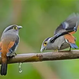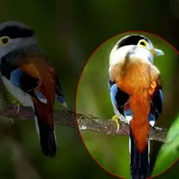 长尾阔嘴鸟是雀形目阔嘴鸟科的鸟类,体长约25厘米,是绿色阔嘴鸟。形长的楔形尾蓝色,喉及脸黄色,顶冠…