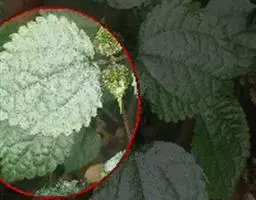 叶椭圆状卵圆形或椭圆状披针形,长2-6厘米,宽0.8-2.5厘米,先端钝或急尖,基部圆形或楔形,边缘具圆齿、牙齿或尖锯齿,草质,上面被稀疏的微硬毛,下面被短疏柔毛,余部散布黄褐色腺点;叶柄长4-15毫米,腹凹背凸,密被疏柔毛。