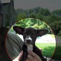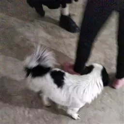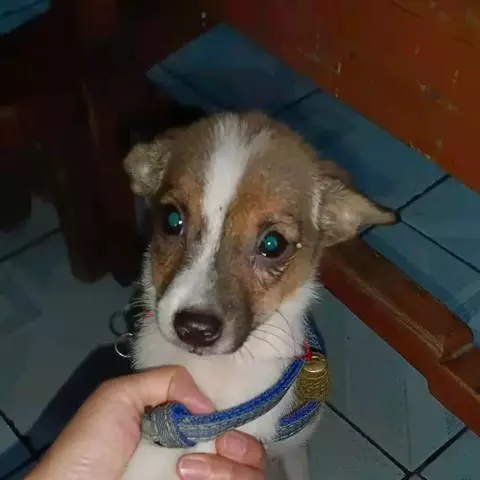 表情——狐狸样,活泼可爱。眼——杏仁状,边缘黑色,位置稍倾斜,间距适中,既不能太宽也不能太窄。外眼角向上翘,最好为深色,表情热切而警觉。圆形、颜色淡或弯曲度大的眼睛都应视为不合格。