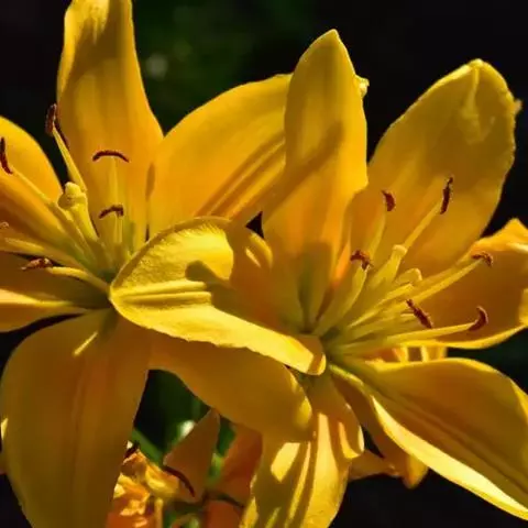 百合喜欢用柔和的光照射。也耐于强光照和半阴,光照不足会引起花蕾脱落,开花数减少。光照充足,植株健壮矮小,花朵鲜艳。百合每天增加光照时间6小时,能提早开花。如果光照时间减少,则开花推迟。