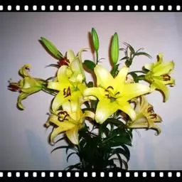 黄色百合花 百合为多年生草本。无皮鳞茎扁球形,乳白色。茎直立,地下茎节有茎生根,地上茎刚直矮壮绿色光滑。叶散生多数,披针形。花顶生数朵,喇叭形,平展,花被先端稍向外反卷,乳白色,花被筒深处淡绿色。
