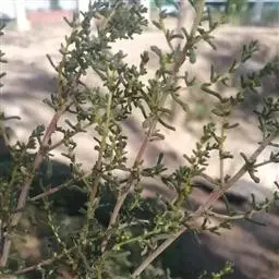 全草灰黄至黄绿色。叶皱缩破碎,全缘。花序生于枝端及叶腋,最末端的分枝针刺状。胞果圆形,果皮透明膜质,与种子贴生。种子圆形,黑褐色,长不及1毫米,有光泽。气微,味微苦
