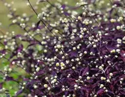 粉末特征:1、叶上表皮细胞垂周壁平直,下表皮细胞垂周壁波状弯曲,均有不定式气孔。2、胞果表面观:果皮薄膜状,表面皱缩,细胞轮廓不清。3、种皮表皮细胞栅状,棕色。4、花冠裂片薄壁细胞含草酸钙砂晶。5、柱头细胞多数是长乳突状。6、花粉粒圆球形,直径约20μm,表面隐约可见散孔点。7、枝端尖刺,由众多端尖的薄壁细胞组成。