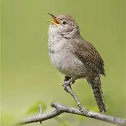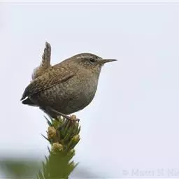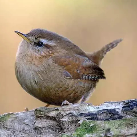 冬鹪鹩(学名:Troglodytes troglodytes)是一种小型鸣禽,原产于北美的冬鹪鹩,传入旧大陆后简称鹪鹩。有44个亚种,广泛分布于北半球。成鸟体长9 -10厘米,翼展13-17 厘米,体重8-13克。通体褐或棕褐色,具众多的黑褐色细横斑。飞羽黑褐色,外侧的5枚初级飞羽外翈具10-11条棕黄白色横斑,极为明显。尾较短而狭,栖止时尾常常高高举起,鸣管结构及鸣肌复杂,善于鸣啭,叫声多变悦耳;鸣唱时呈仰首翘尾之姿,鸣声清脆响亮。离趾型足,趾三前一后,后趾与中趾等长;腿细弱,跗跖后缘鳞片常愈合为整块鳞板;雀腭型头骨。