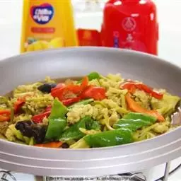 6. 倒入肉泥改大火翻炒,加入豆角翻炒;