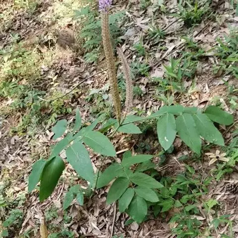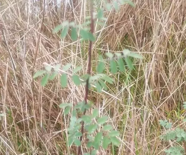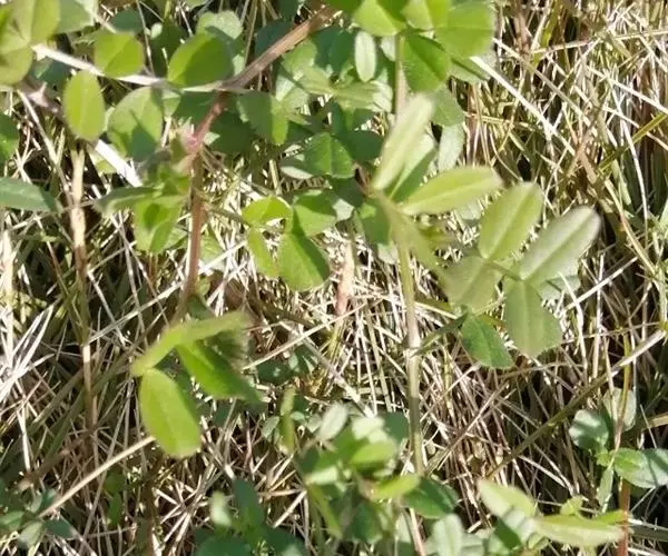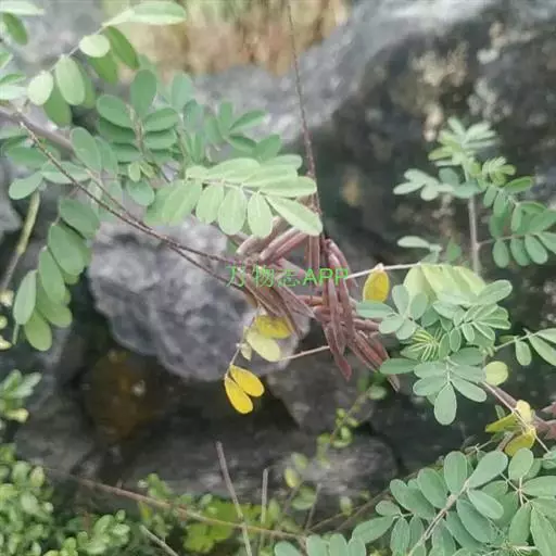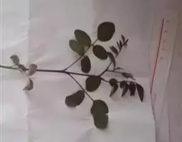 药材性状:枝条圆柱形,有纵棱,被白色丁字毛。羽状复叶互生,小叶9-13,常脱落,小叶倒卵状矩圆形或倒卵形,长1-2cm,宽0.5-1.5cm,先端钝,有短尖,基部近圆形,两面被丁字毛,叶柄、叶轴与小叶柄均被白色丁字毛。气微,味微苦。