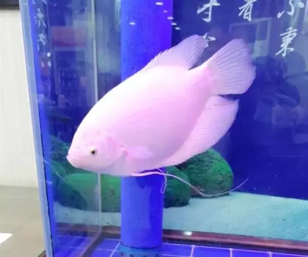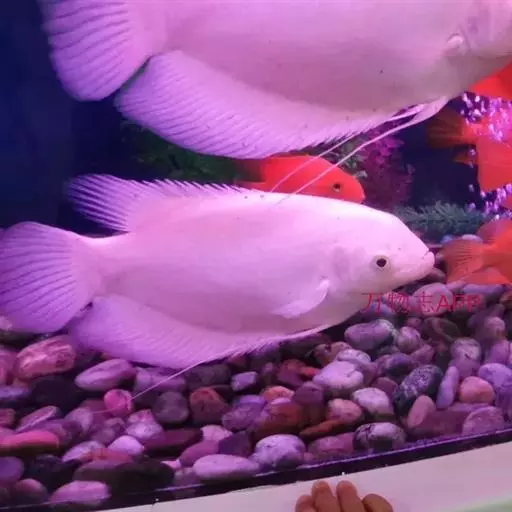 招财鱼,Osphronemus goramy (Lacepède, 1801),又名战船、长丝鲈,原产地越南、泰国、马来西亚等,是鲈形目(Perciformes)攀鲈亚目(Anabantoidei)丝足鲈科 (Osphronemidae)丝足鲈属的一种鱼类。该科的鱼一般体型都比较小,但招财是该科鱼中的巨人。成鱼体长20~69厘米,椭圆形。体色灰褐,腹鳍变异为两根长长的丝鳍,各鳍浅红色。饲养水温22~32摄氏度,水质要求不严,易饲养。繁殖水温26~27摄氏度雄鱼背鳍末梢尖长,属泡沫卵生鱼类。在水族箱水面上漂浮几颗水草,将一对亲鱼放入,雄鱼在水面上突出大量泡沫,并将受精卵突入泡沫中孵化。雌鱼每次产卵500~1000粒。具有很强的领域性,会攻击其他鱼类,不推荐与其他鱼类混养。
