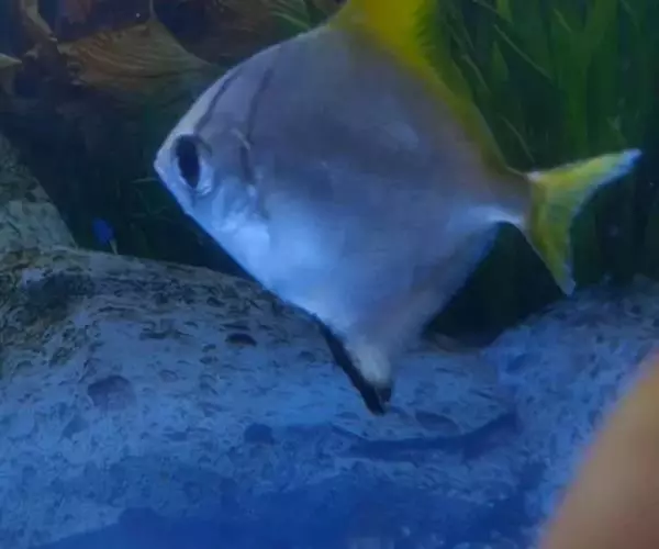 马夫鱼。成鱼体甚侧扁,背缘高而隆起,略呈三角形。背鳍鳍棘11根,第四鳍棘延长呈鞭状,鳍膜亦随之延长…