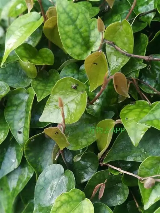 假蒟是胡椒科胡椒属多年生草本植物。小枝近直立,无毛或幼时被极细的粉状短柔毛;叶近膜质,有细腺点,…