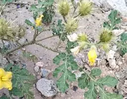 乳茄,茄科茄属直立草本植物,覆盖短的柔毛和扁平尖刺,小枝覆盖长柔毛和扁平刺,刺为蜡黄色,…