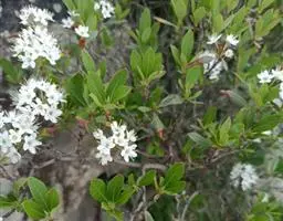 头花杜鹃(学名:Rhododendron capitatum Maxim.):常绿小灌木,高0.5-1.5米,分枝多,枝条直立而稠密。幼枝短,黑色或褐色。叶近革质,芳香,椭圆形或长圆状椭圆形,上面灰绿或暗绿色,下面淡褐色。花序顶生,伞形,有花2-5朵;花冠宽漏斗状,长13-15毫米,淡紫或深紫,紫蓝色。蒴果卵圆形。花期4-6月,果期7-9月。