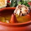 地锅鸡的汤汁较少,口味鲜醇,饼借菜味,菜借饼香,具有软滑与干香并存的特点。 。