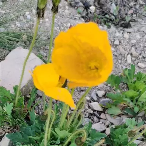 野罂粟 Banfi, Bartolucci, J.-M.Tison & Galasso)是罂粟科、高山罂粟属多年生草本植物。株高20-50厘米,具乳汁,全体被粗毛。叶生基生,具长柄;叶片轮廓卵形或长卵形、狭卵形或披针形,先端钝圆,两面疏生微硬毛。花单独顶生。萼片2,广卵形,被棕灰色硬毛,花开后脱落。花瓣4,桔黄色,倒卵形至宽倒卵形,具微波状缺刻。雄蕊多数,花丝丝状;子房具棱,柱头5-9裂。蒴果,狭倒卵形,密被视而长的硬毛,顶孔开裂。种子细小,多数。花期6-7月,果期8月。生于海拔580-3500米的林下、林缘、山坡草地。两半球的北极区及中亚和北美等地有分布。原产地俄罗斯;引入阿拉斯加、格陵兰岛和中国多地。