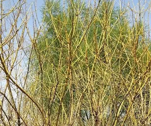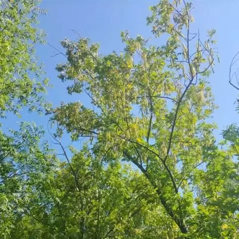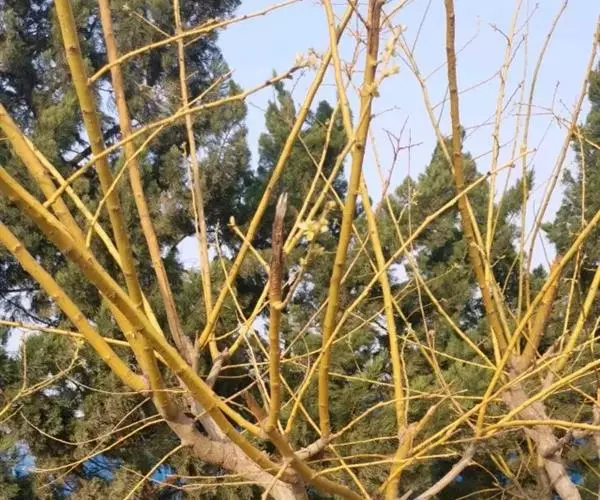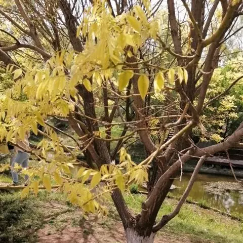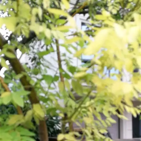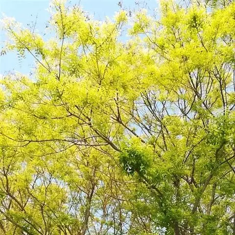 金枝国槐发芽早,幼芽及嫩叶淡黄色,5月上旬转绿黄,秋季9月后又转黄,每年11月至第二年5月,其枝干为金黄色,因此得名,是优良的绿化美化树种 。