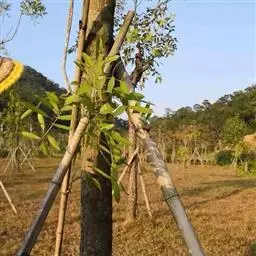 嫁接后一个月,成活的接穗即可发芽。同时砧木上的隐芽也会萌发,形成萌蘖,要及时将其去除,以免影响接穗生长。因接穗生长旺盛,要及时解绑,并将新梢绑缚在木棍上,以防其被风刮坏。
