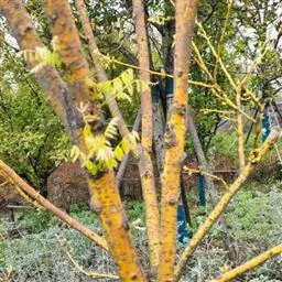 1.剪取黄金槐一年生枝条做接穗,除去复叶后备用,由于天气较热等原因,最好采取随嫁接随取接穗的方法,以免接穗采下时间过长,水分丧失多而降低成活率。
