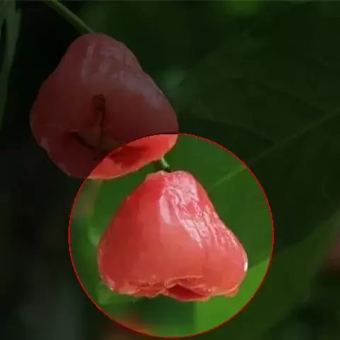 杈把果果实椭圆无核,色泽鲜红美艳,肉质细嫩,清香甘甜,适于食用。其果实中含有丰富的蛋白质、矿质元素、维生素和氨基酸,其中钙的总含量比苹果高出24倍,铁的含量比目前水果中含铁较高的桃果高出5倍,磷的含量为目前报道过的所有果树之最,锌含量也高于一般果树,故被誉为天然营养库。