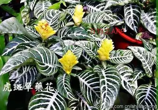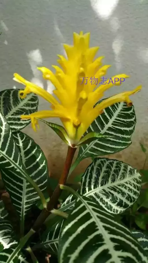 金脉单药花(学名:Aphelandra squarrosa Nees cv. Dania)多年生草本植物。叶对生,长椭圆形;全缘而微向内卷;深绿色,叶脉淡黄色或黄色。花为顶生穗状花序,黄色,花期夏秋季,花期长达2 个月。