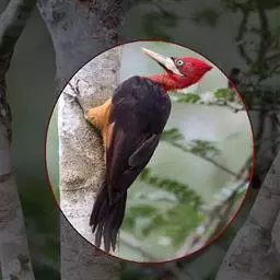 白腹黑啄木鸟,是啄木鸟科、黑啄木鸟属的中型鸟类,体长43-46厘米,头顶具长的红色羽冠,颚纹亦为红色,…