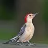 橡树啄木鸟:体长20-23厘米。前额灰黄色,头顶、后颈红色。喉下部、腰和腹部白色,…